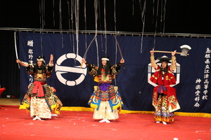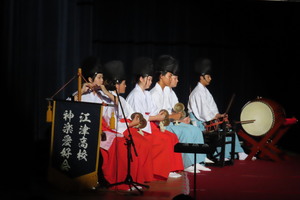 部活動の活動理念「礼儀・感謝・向上心」のもと、地元を中心に、県内外のイベント等に参加をし、神楽を通して様々な地域・年齢の方と交流させていただき、「地域・社会で生きるとは何か」を日々考えながら活動をしています。