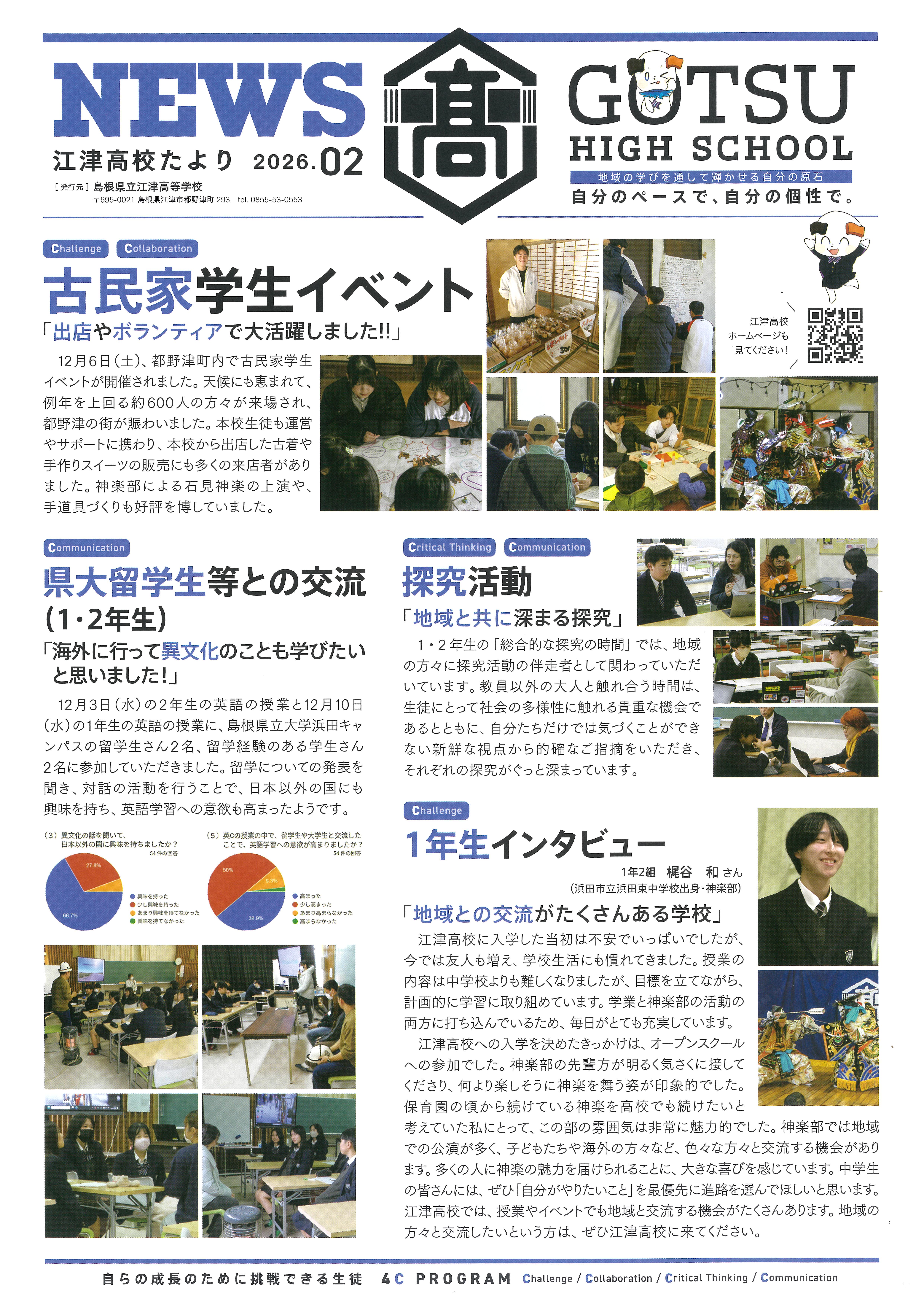江津高校たよりでは、江津高校の地域連携や Goプロ、部活動、学校行事などの様子をお届けしています。