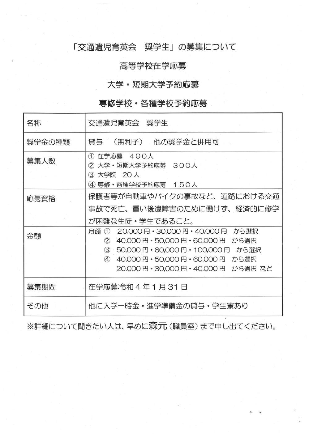 R5交通遺児育英会 奨学生募集要項 [再掲載]【第2次予約募集:R6.1.31(日)迄】