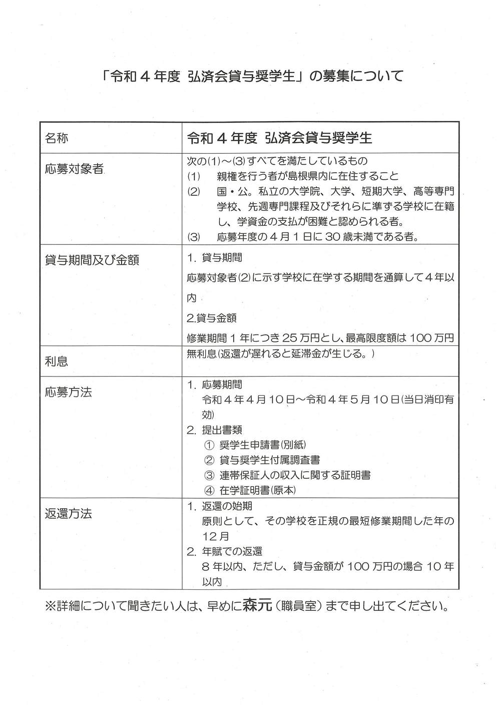 【全学年対象】R6高等学校等給付奨学生募集(日本教育公務員弘済会島根支部)R6.6/20(木)当日消印有効